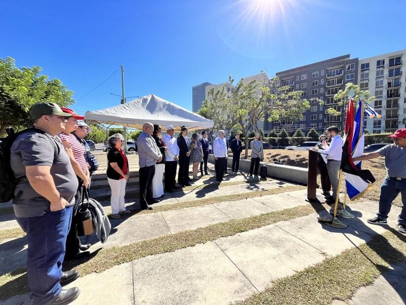 Posteriormente se colocó una ofrenda floral en el Monumento a Sandino, ubicado en la Plaza Nicaragua de la ciudad de San Salvador. Dicho acto fue acompañado por los Embajadores de Belice, China, Costa Rica, República Dominicana, Cuba, México, Honduras, Marruecos y Palestina.