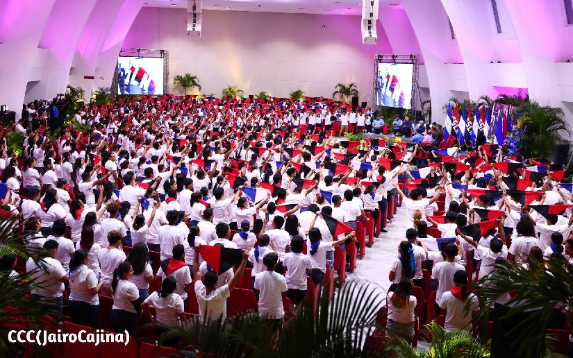 El acto es presidido por el Presidente Comandante Daniel Ortega y la Vicepresidenta de Nicaragua, Compañera Rosario Murillo.