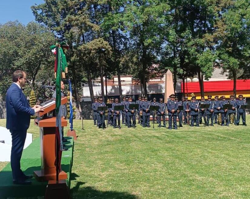La Banda de Música de la Fuerza Aérea Mexicana, entonó los Himnos Nacionales de México y Nicaragua.