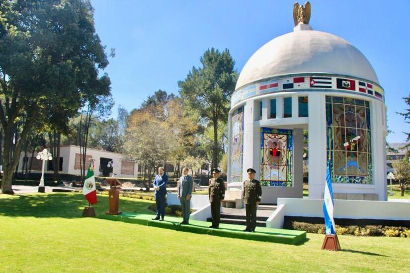 Autoridades del Gobierno de México, Miembros del Cuerpo Diplomático, Representantes de Organismos Internacionales e invitados, colocaron una ofrenda floral en el Busto del General Augusto C. Sandino.