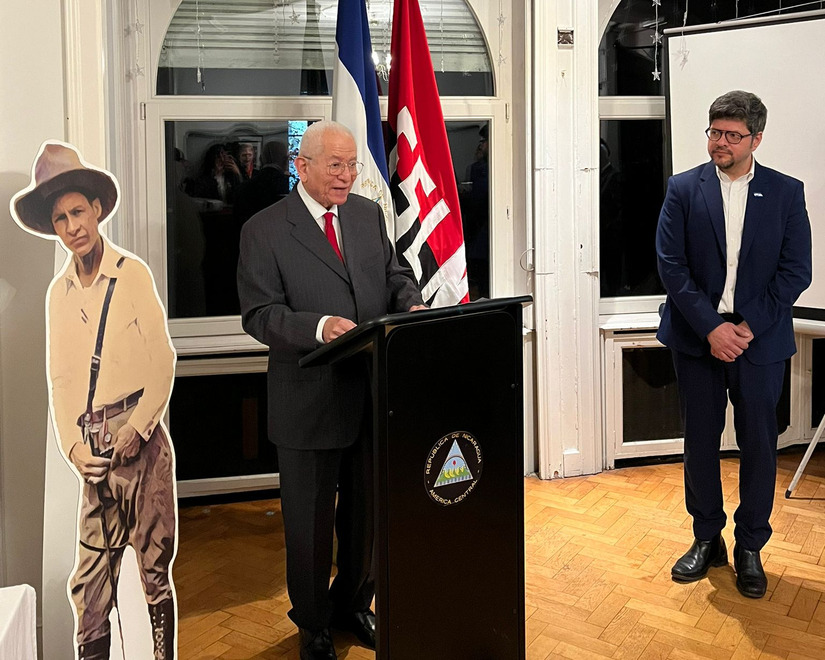 Por su parte, el Compañero César Castañeda, Embajador de Nicaragua en Bélgica, agradeció en nombre de Nuestro Pueblo y transmitió los saludos fraternos de nuestro Presidente-Comandante Daniel Ortega y nuestra Vice-Presidenta, Compañera Rosario Murillo, compartiendo también que a 90 años de que Sandino fuese asesinado, su Gesta y Grandeza, nos continúa inspirando y nos mantiene firmes y dispuestos a seguir defendiendo nuestra Soberanía, nuestra Libertad y nuestra Paz.