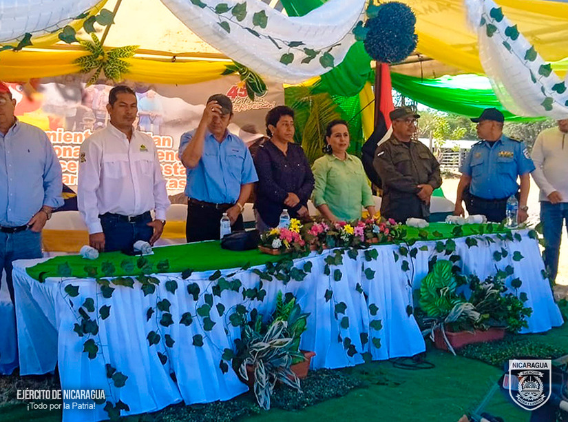 Durante el acto, el Coronel Domínguez, transmitió el saludo del Comandante en Jefe del Ejército de Nicaragua, General de Ejército Julio César Avilés Castillo y les manifestó el compromiso de la institución de continuar trabajando en coordinación con todos los sectores, para cumplir de manera sostenida las misiones y tareas, el control y sofocación de incendios forestales, agropecuarios y malezas, que se presenten en las zonas que sean afectadas.