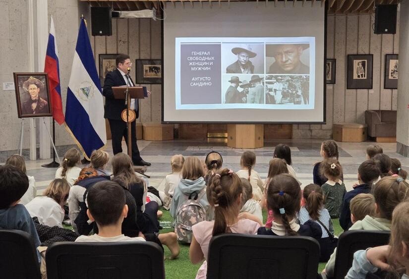 Este 22 de Febrero en memoria del legado patriótico de nuestro General Augusto C. Sandino en su 90 Aniversario del Tránsito a la Inmortalidad, la Embajada de la República de Nicaragua en coordinación con la Biblioteca Estatal de Literatura Infantil de Rusia, organizó un conversatorio sobre la Vida y Legado del General de Mujeres y Hombres Libres con Niñ@s, y Adolescentes.