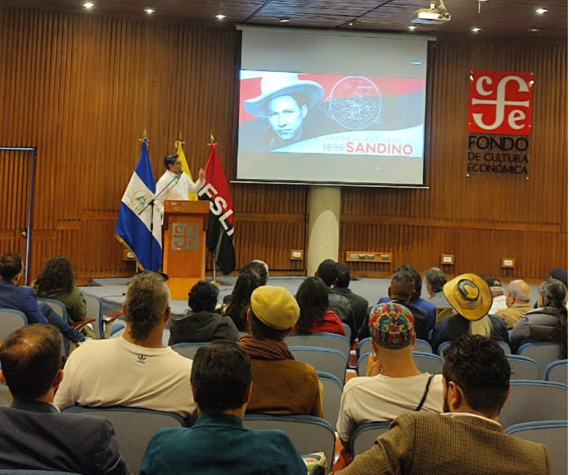 Este Miércoles 21 de Febrero del 2024, el Gobierno de Reconciliación y Unidad Nacional a través de su Embajada en la República de Colombia, rindió un emotivo homenaje al General de Hombres y Mujeres Libres, Augusto César Sandino, en el 90 Aniversario de su Tránsito a la Inmortalidad, en el Auditorio Rogelio Salmona del Centro Cultural Gabriel García Márquez, el Compañero Harold Delgado, Encargado de Negocios de República Nicaragua, trasmitió los saludos del Comandante Presidente Daniel Ortega y de la Vicepresidenta Rosario Murillo, a la actividad asistieron miembros del Cuerpo Diplomático acreditado, senadores, poetas y Compañeros de Solidaridad, el Compañero Delgado destacó el Legado Victorioso del General Sandino y sus aportes a la conciencia libertaria de América Latina, también se Presentó el material Audiovisual titulado “Sandino” del cineasta nicaragüense Marcio Vargas.