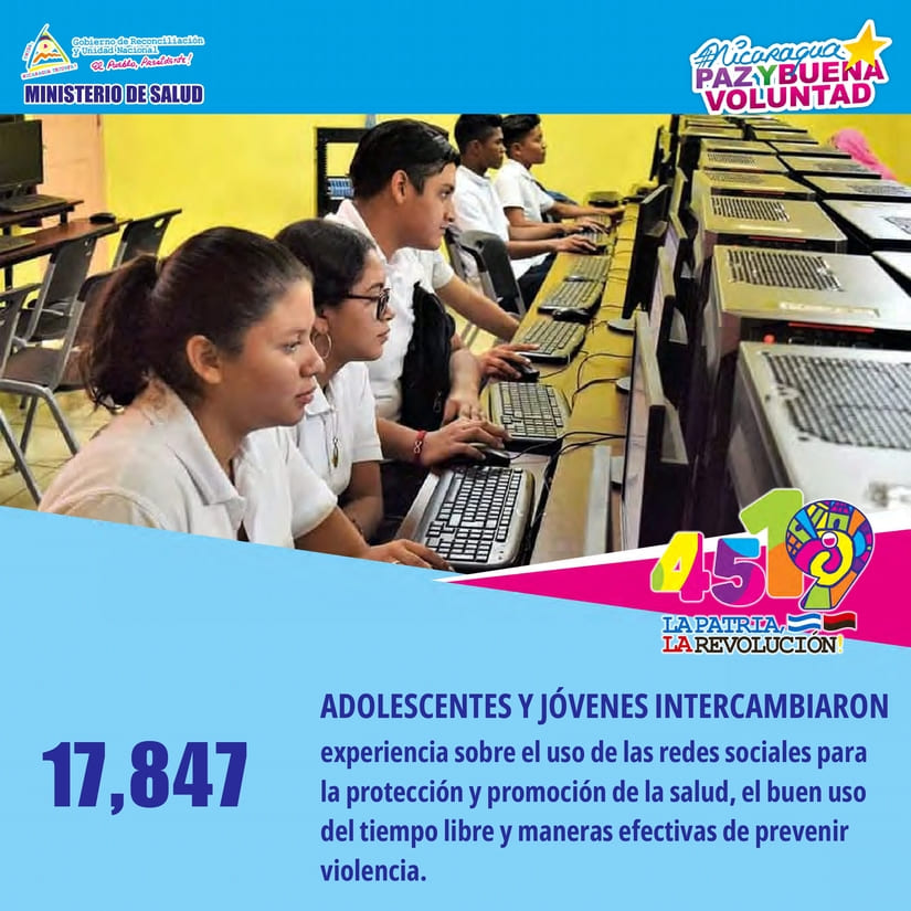 • 17,847 adolescentes y jóvenes intercambiaron experiencia sobre el uso de las redes sociales para la protección y promoción de la salud, el buen uso del tiempo libre y maneras efectivas de prevenir violencia.