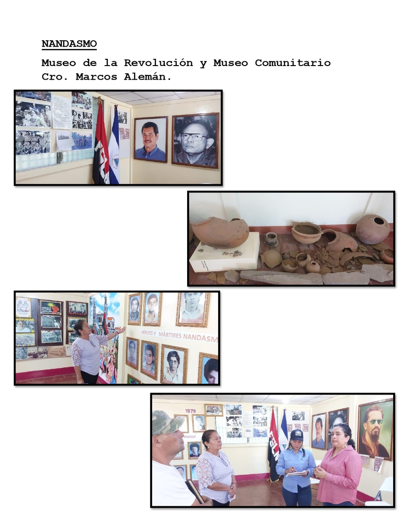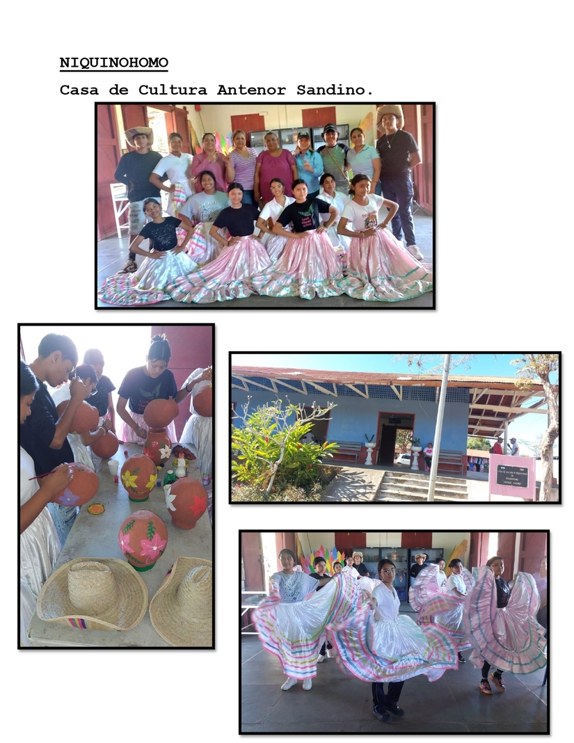 • Compañera Javiera Pérez: los Municipios de Nindirí, Tisma y San Juan de Oriente, en conjunto con la Compañera Yessica Peña de INIFOM Central, Compañero Frank Gutiérrez del Departamento de Danza y Compañera Ana María Rocha, Dirección Nacional de Museos ICPJ.