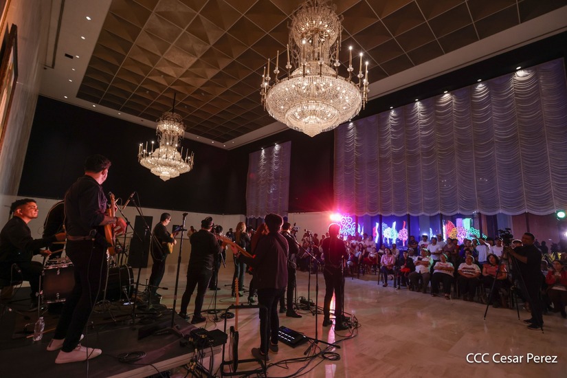 A través de la música revolucionaria y testimonial interpretada por el Grupo Liberarte, los asistentes rindieron homenaje a los Héroes y Mártires que lucharon por la Nicaragua Libre, Bendita y en Paz que viven las familias.