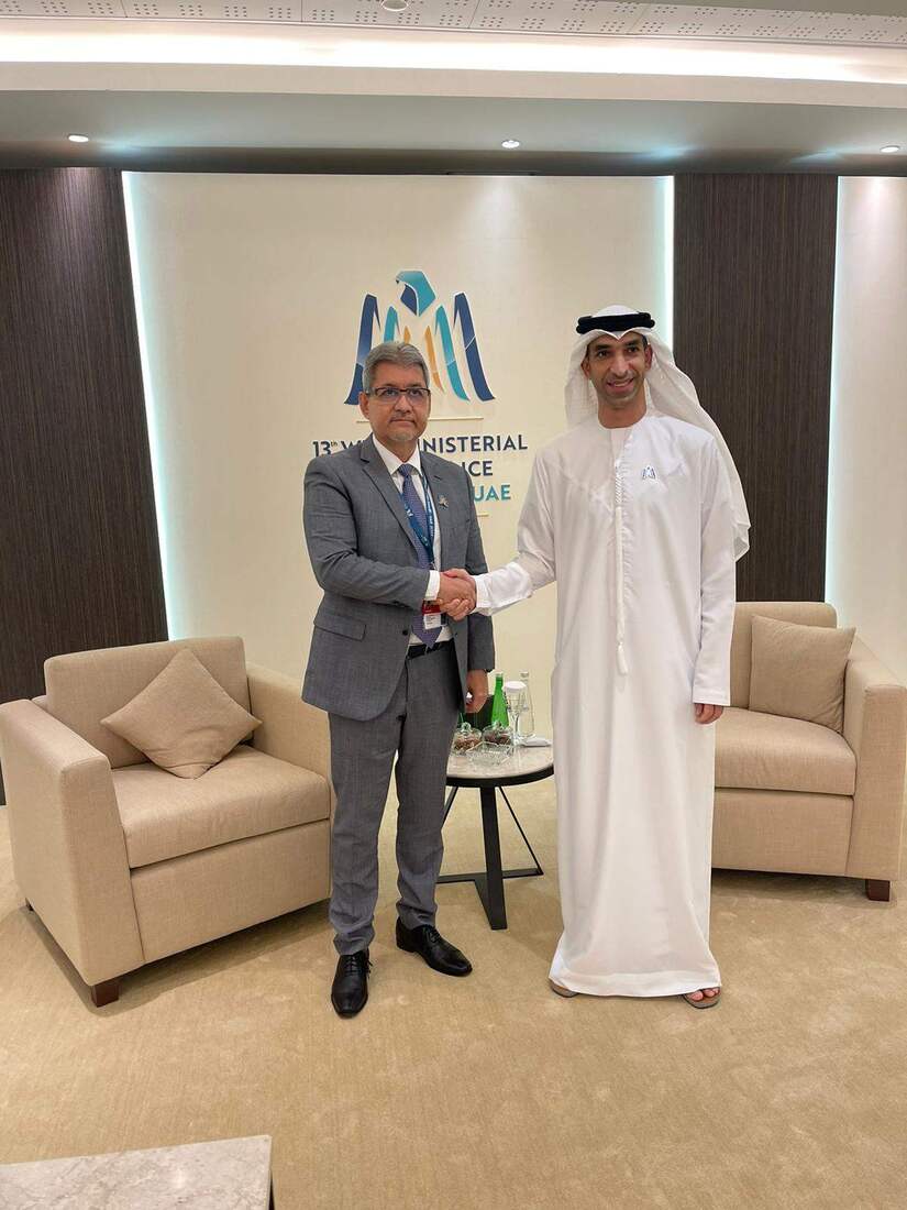 En el marco de estrechar las Relaciones Bilaterales entre Los Emiratos Árabes Unidos y la República de Nicaragua, el día de hoy Sábado 23 de Febrero del 2024, el Ministro de Comercio de los Emiratos Árabes Unidos, Señor Thani Bin Ahmed Al Zeyoudi, recibió la delegación de Nicaragua quien está realizando visita de trabajo a los Emiratos Árabes Unidos al mismo tiempo está participando en la 13ava Conferencia Ministerial de la Organización Mundial del Comercio (OMC), realizada en Abu Dabi- EAU.