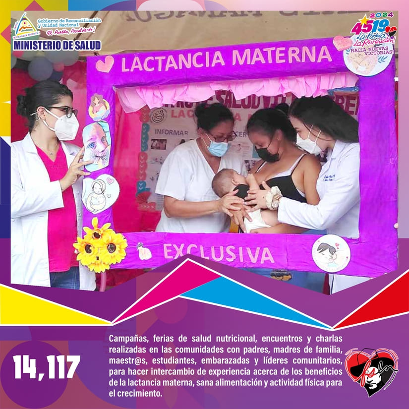 • 14,117 Campañas, Ferias de Salud Nutricional, Encuentros y Charlas realizadas en las comunidades con padres, madres de familia, maestr@s, estudiantes, embarazadas y líderes comunitarios, para hacer intercambio de experiencia acerca de los beneficios de la lactancia materna, sana alimentación y actividad física para el crecimiento.
