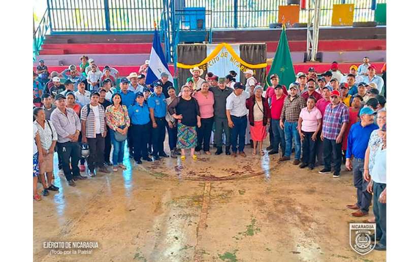 El Ejército de Nicaragua consecuente con el lema de que “Somos el Pueblo mismo uniformado trabajando en su propio beneficio”, del 22 al 24 de febrero de 2024, a través del jefe del 6 Comando Militar Regional, Coronel Inf. DEM Osmín Edgardo García, participó en reunión con autoridades municipales y 275 productores cafetaleros y ganaderos de los municipios de: Santa María de Pantasma, departamento de Jinotega; Waslala, Región Autónoma de la Costa Caribe Norte; y de Rancho Grande, departamento de Matagalpa, con el objetivo de evaluar el desarrollo y cumplimiento del Plan de Protección y Seguridad de la Cosecha Cafetalera, Ciclo Productivo 2023-2024, escuchar sus planteamientos y coordinar aspectos relacionados a la seguridad en el campo, lucha contra el abigeato y protección del ambiente y los recursos naturales.