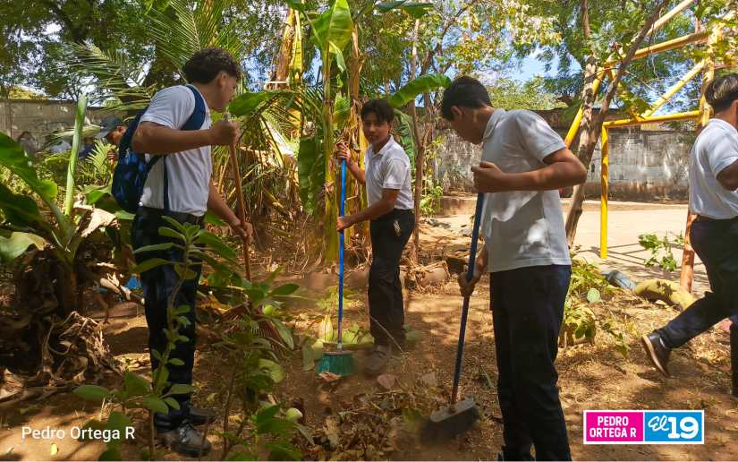 Los estudiantes del Centro Escolar José Antonio Hooker ubicado en el Distrito VI de Managua, realizaron una jornada de limpieza y embellecimiento de esta entidad escolar, en saludo al 41 aniversario de la gesta heroica de San José de Las Mulas, Matiguás, Matagalpa.