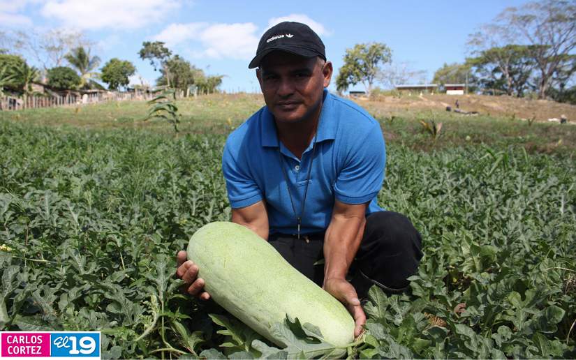 Paulino Medina, es productor de la comunidad La Rampla, él junto a su familia están siendo parte de lo que para ellos es un nuevo modelo de trabajo, por muchos años se ha dedicado a la ganadería y la producción de granos básicos, pero, con la apertura de estos espacios brindados por el Gobierno hoy cuenta con una parcela diversificada, logrando contar con suficientes cosechas para el consumo familiar y también para la comercialización local.