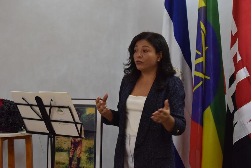 Explico que a Nicaragua y Etiopia nos une la cultura, la lucha anticolonialista y antiimperialista, su lucha por ver un mundo cada vez más justo, más equitativo, esa lucha por el respeto a la autodeterminación y el desarrollo humano. También resaltó la importancia del mes de Febrero en el que conmemoramos el paso a la inmortalidad del Gran Rubén Darío y el General de Hombres y Mujeres Libres, Augusto Calderón Sandino, dos Héroes Nicaragüenses, pero también de América Latina pues sus luchas e ideales traspasaron las fronteras, convirtiéndose en estandarte e inspiración para otros Pueblos que lucharon y luchan por el respeto a la Libertad y la Soberanía.