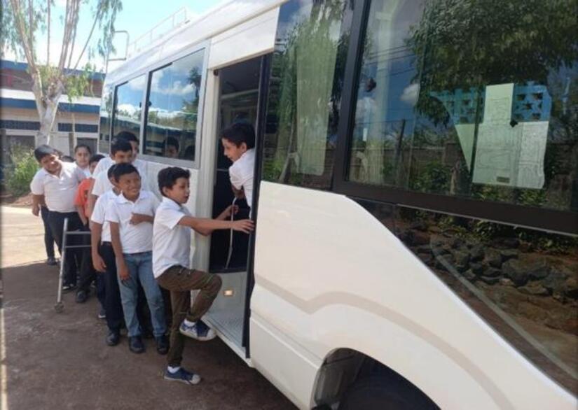 Se han entregado 09 buses para el traslado de estudiantes con discapacidad atendidos en Escuelas de Educación Especial de Diriamba, Granada, La Trinidad, Boaco, Matagalpa, León, Juigalpa, Ocotal y Chichigalpa, lo que permite garantizar el traslado seguro de estudiantes, su asistencia a clases y permanencia escolar.