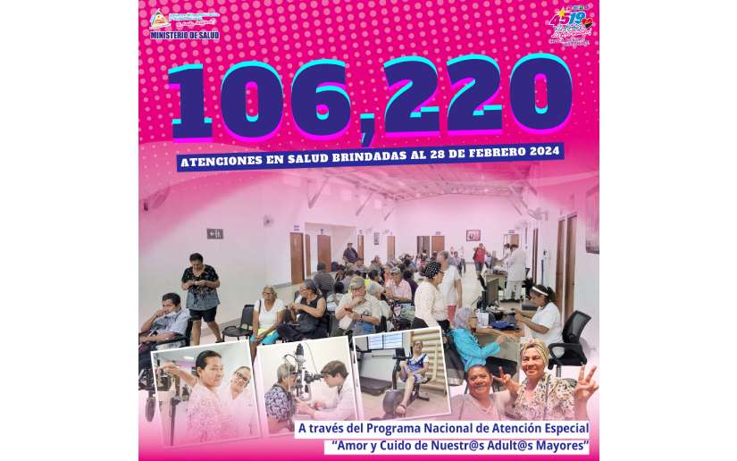 En cumplimiento al Programa Nacional de Atención Especial “Amor y Cuido de Nuestr@s Adult@s Mayores”, al 28 de Febrero de 2024 hemos brindado 106,220 atenciones, detalladas a continuación: