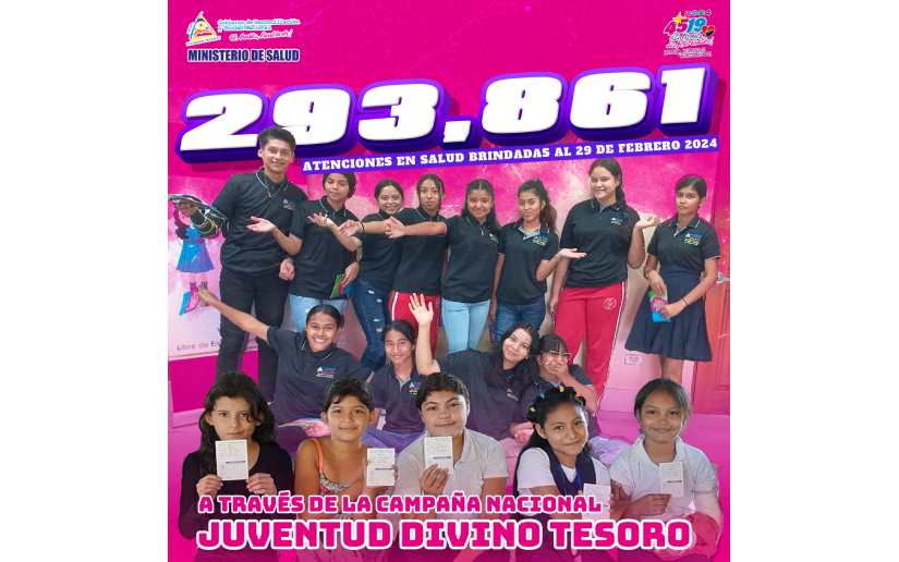 En seguimiento a las actividades de la Campaña Nacional “Juventud, Divino Tesoro”, al 29 de Febrero 2024, hemos brindado 293,861 Atenciones en Salud, realizando las siguientes acciones: