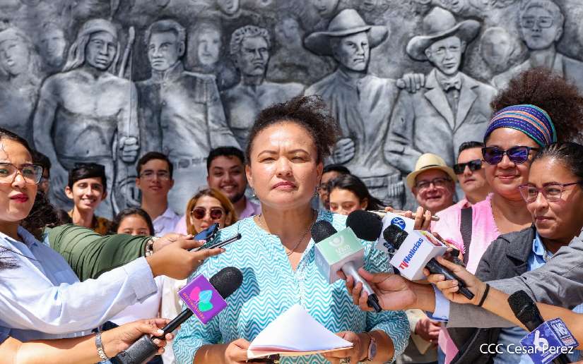 Comentó que "en esta fecha también se han hecho presentes ante el Mural de los Héroes de la Patria, Comunicadores Patrióticos que desde nuestros espacios de trabajo y lucha, y de tantas batallas fructíferas por amor y de amor, paz, patria y libertad, saludan a este día marcando las tareas privilegiadas de la noble y brava fuerza de nuestra inteligencia, de nuestro espíritu, de nuestra honrosa y gloriosa condición de nicaragüenses".