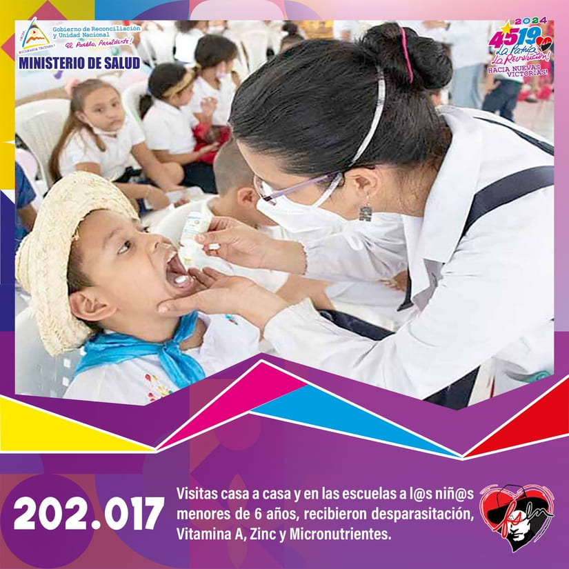 • 202,017 Visitas casa a casa y en las escuelas a l@s Niñ@s menores de 6 años, para entregar desparasitantes, Vitamina A, Zinc y Micronutrientes.