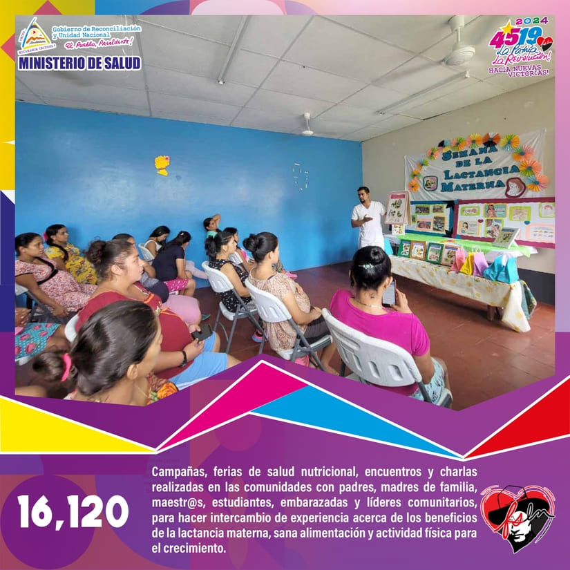• 16,120 Campañas, Ferias de Salud Nutricional, Encuentros y Charlas realizadas en las comunidades, con padres y madres de familia, maestr@s, estudiantes, embarazadas y líderes comunitarios, para intercambiar experiencias acerca de los beneficios de la lactancia materna, sana alimentación y actividad física para el crecimiento.