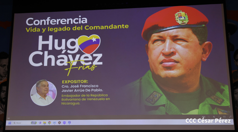 La conferencia magistral fue impartida por el embajador de la República Bolivariana de Venezuela en Nicaragua, Javier Arrúe, quien compartió con los universitarios, que Chávez hizo del pueblo venezolano un pueblo esencialmente político, resistiendo y manteniendo la esperanza de un mundo diferente, de un mundo de justicia, paz y solidaridad.
