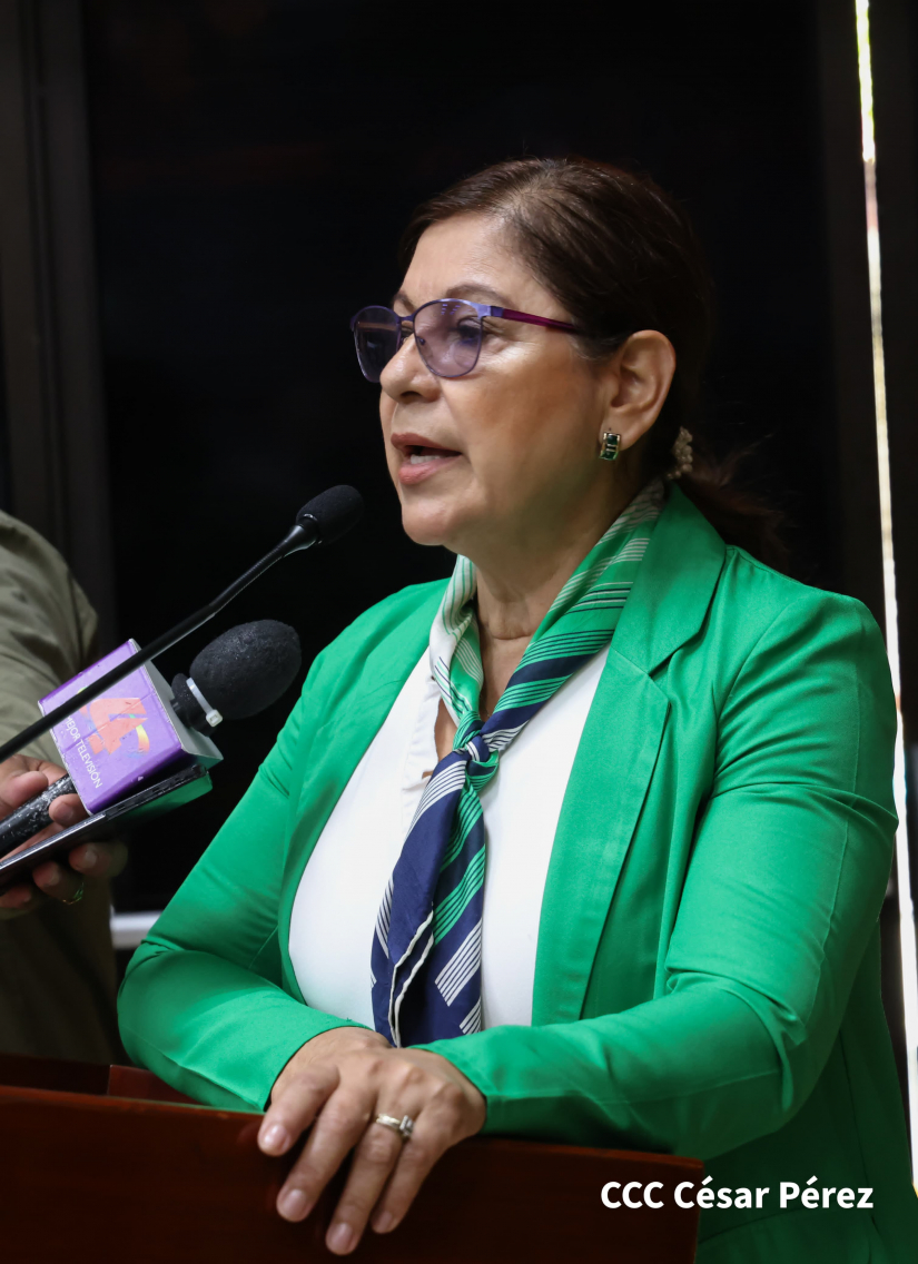 La maestra Ramona Rodríguez, rectora de la UNAN-Managua, en nombre de la comunidad universitaria dio las palabras de bienvenida al compañero, hermano y amigo, embajador de la República Bolivariana de Venezuela en Nicaragua, Javier Arrúe de Pablo y agradeció por brindar esta conferencia magistral.