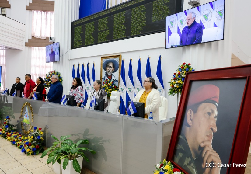 Asimismo, la diputada Indiana López Rueda, en nombre de la Comisión Parlamentaria de Amistad con la República Bolivariana de Venezuela externó un mensaje de solidaridad con el pueblo venezolano y reafirmó el compromiso de los nicaragüenses revolucionarios con el legado histórico y de lucha que un día impulsó el Comandante Hugo Chávez.