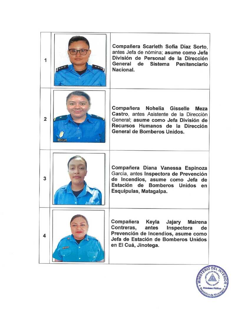 06 Compañeras Protagonistas del Ministerio del Interior, asumirán cargos en las diferentes áreas del Sistema Penitenciario Nacional, Bomberos Unidos, Migración y Extranjería; quienes han desempeñando su trabajo con disciplina, compromiso y vocación de servicio.