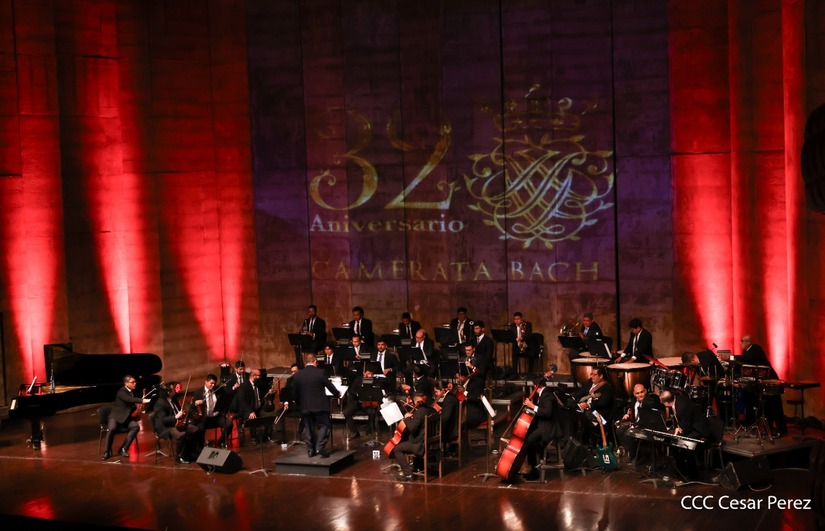"Son 32 años de hacer cultura, arte, música y para mí ha sido un gusto estar aquí con Camerata Bach porque yo he visto desde pequeña la trayectoria y desarrollo de la música clásica de Nicaragua, se ha despertado el gusto por este género con el Comandante Daniel, con la Compañera Rosario Murillo, ese quehacer de la música que va a todo el pueblo, porque la música trasciende y la música de la Camerata Bach ha calado en el corazón del pueblo", aludió Pérez Guerra.