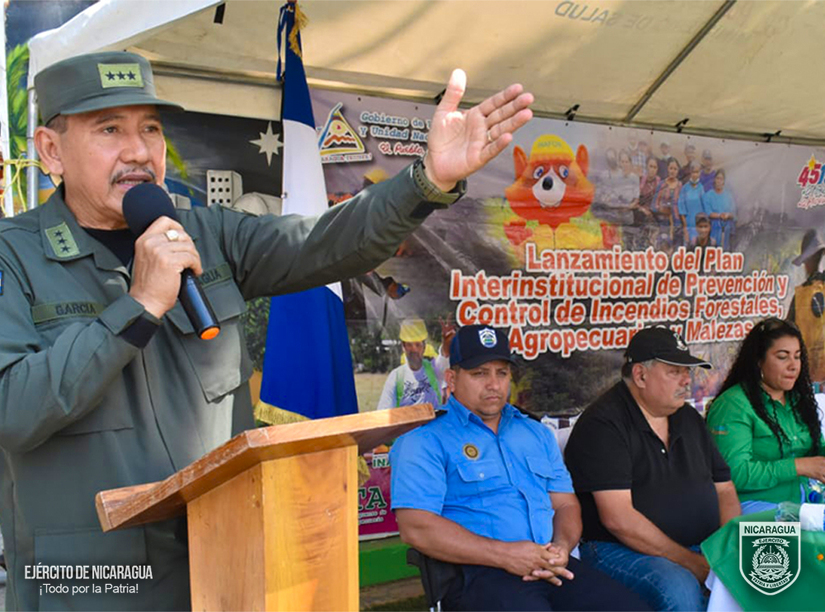 La codirectora del Instituto Nacional Forestal (INAFOR), ingeniera Ileana Fuente, expresó: «…destacar la participación del Ejército, quien está coordinando también este Plan Nacional Interinstitucional para prevenir, controlar los incendios forestales, agropecuarios y malezas, hacerle saber a las familias, que nuestro Ejército de Nicaragua ya está preparado con sus tropas para resguardar la vida humana y resguardar nuestra madre tierra, felicitar siempre al Ejército de Nicaragua, por ese patriotismo y esa entrega para nuestro pueblo…».