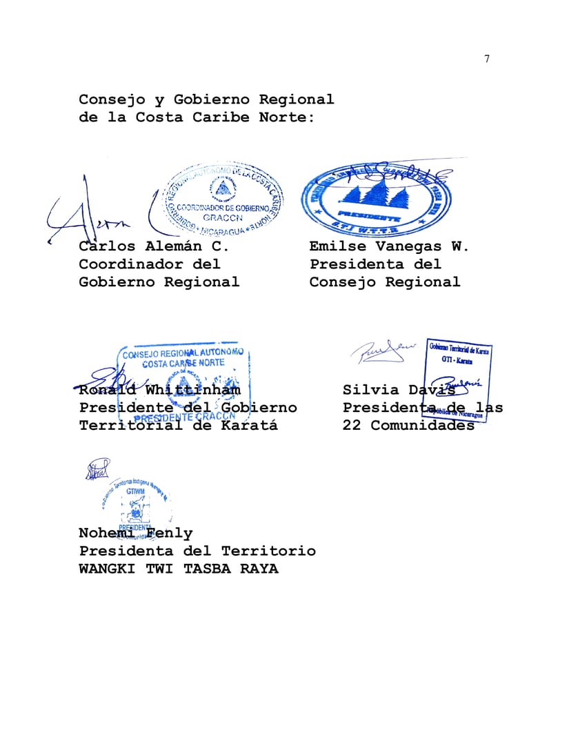 We demand and require that the Green Climate Fund guarantee the mobilization of the resources committed by the International Community, those that have been taken from the Indigenous and Afro-descendant Peoples of our Nicaragua. Mobilize these resources to address the challenges and multiple crises that Humanity faces, such as Climate Change caused by the richest countries, which are the same ones that attack our Indigenous, Miskito, Mayagna, Creole, Garífuna, Rama, Ulwas, Sumus and Mestizos Peoples.