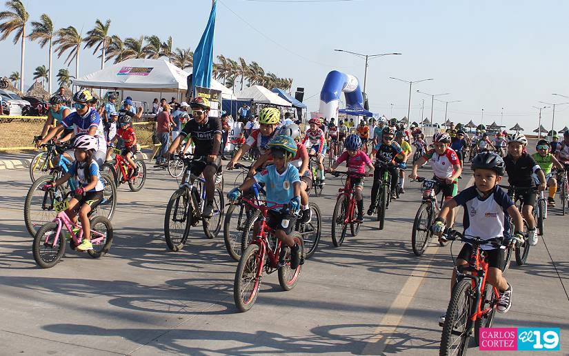 En la categoría infantil, niños y niñas compitieron, reflejando el crecimiento de la comunidad ciclista en Nicaragua, que motiva a los jóvenes a mejorar sus habilidades gradualmente.