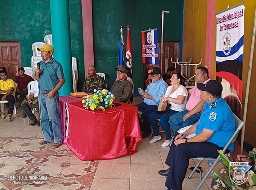 Durante la reunión el Coronel Zelaya transmitió el saludo del Comandante en Jefe del Ejército de Nicaragua, General de Ejército Julio César Avilés Castillo y les manifestó el compromiso de continuar trabajando de manera sostenida, para que los productores sigan trabajando en un ambiente de tranquilidad, estabilidad, seguridad, y paz.