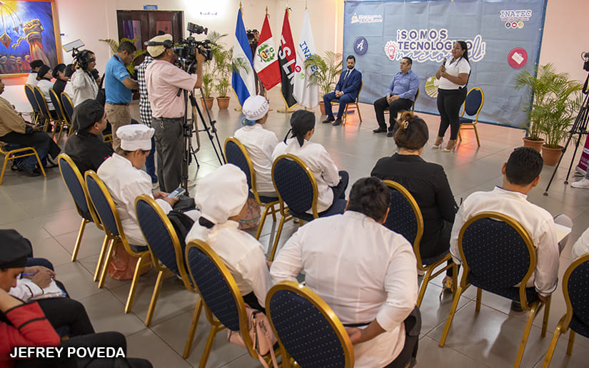 El compañero Walter Sáenz, subdirector general de Inatec, indicó que en coordinación con la Embajada de Perú se da el intercambio de cultura que viene a contribuir y conocer la cocina peruana y permite fortalecer el conocimiento de estos docentes.