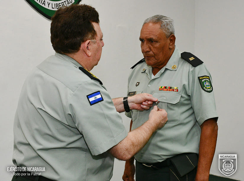 El Comandante en Jefe del Ejército de Nicaragua, destacó: «…en esta ceremonia, el Ejército de Nicaragua y la Comandancia General, hacemos un digno y merecido reconocimiento a 14 hermanos de armas que concluyen su carrera militar…todos ustedes…desde los cargos desempeñados aportaron con sus esfuerzos a la fundación, el desarrollo y la modernización del Ejército de Nicaragua…todos han dejado constancia de ser hombres y mujeres con patriotismo, dignidad y valentía, actuando con alto sentido de pertenencia institucional durante todos estos años de prestación del servicio militar, ustedes dieron lo mejor de cada uno, por ello, es meritorio reconocerles su contribución y aporte para que Nicaragua tenga hoy un Ejército altamente patriótico, firme y cohesionado, con capacidad y vitalidad para cumplir las misiones y tareas mandatadas por nuestra Constitución y las leyes…».