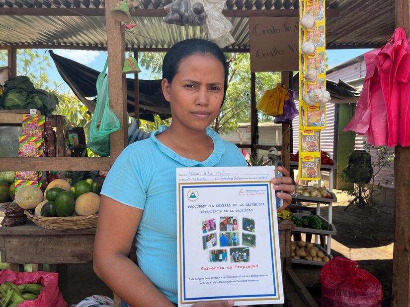 Edelma, de lunes a viernes palmea tortilla y los fines de semana vende nacatamales, es ejemplo de la mujer luchadora, esforzada, que hoy siente que ese sacrificio ha valido la pena al tener en sus manos, su título de propiedad.