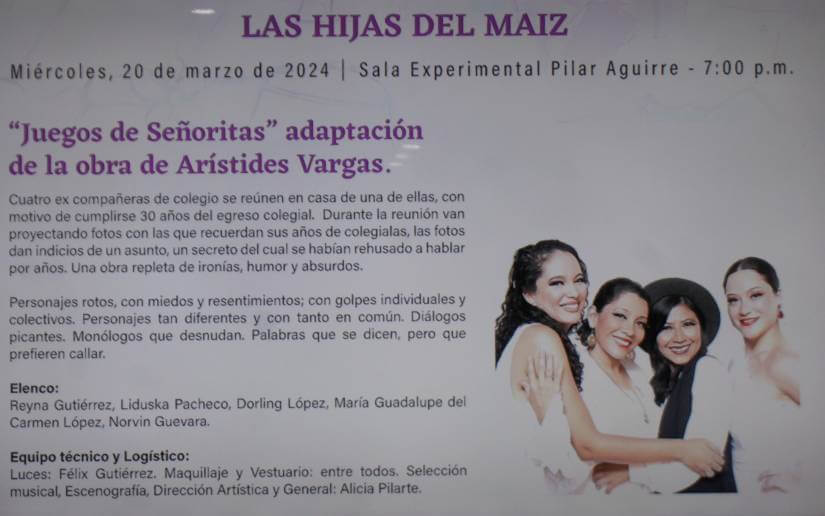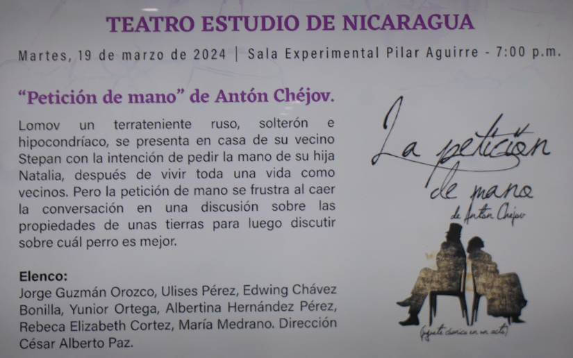 El próximo lunes se presenta un grupo de la Universidad Nacional de Ingeniería, el martes la compañía de Teatro Estudio Nicaragua, el miércoles la compañía las Hijas del Maíz, y el viernes se cierra con la compañía Quiebra Platillos.
