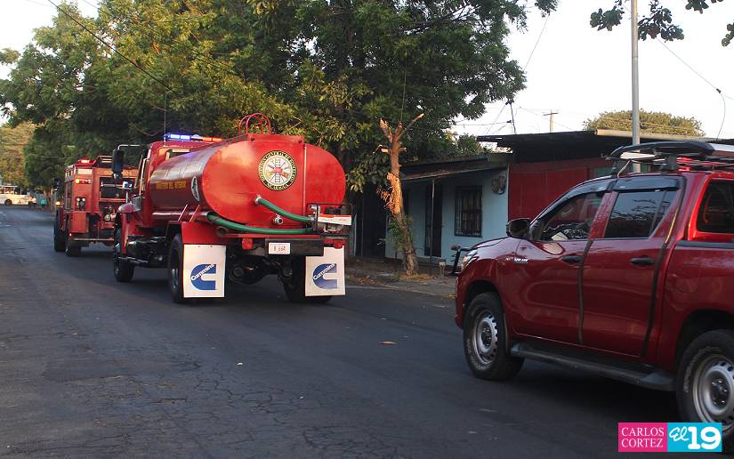 “Estamos movilizando un camión de bomberos con 500 galones de agua y un camión cisterna con 2 mil galones de agua, para atender a nuestra población de Villa Jerusalén, esta estación de bomberos se está construyendo ahí porque sabemos que la estación más cercana que había era la del Iván Montenegro y ese es un sector que ha crecido mucho y la respuesta ante una emergencia sobrepasaba los diez minutos”, señaló el Comisionado mayor Ramón Landero.