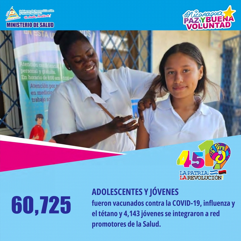 • 60,725 Adolescentes y Jóvenes vacunados contra la COVID-19, Influenza y el Tétanos.