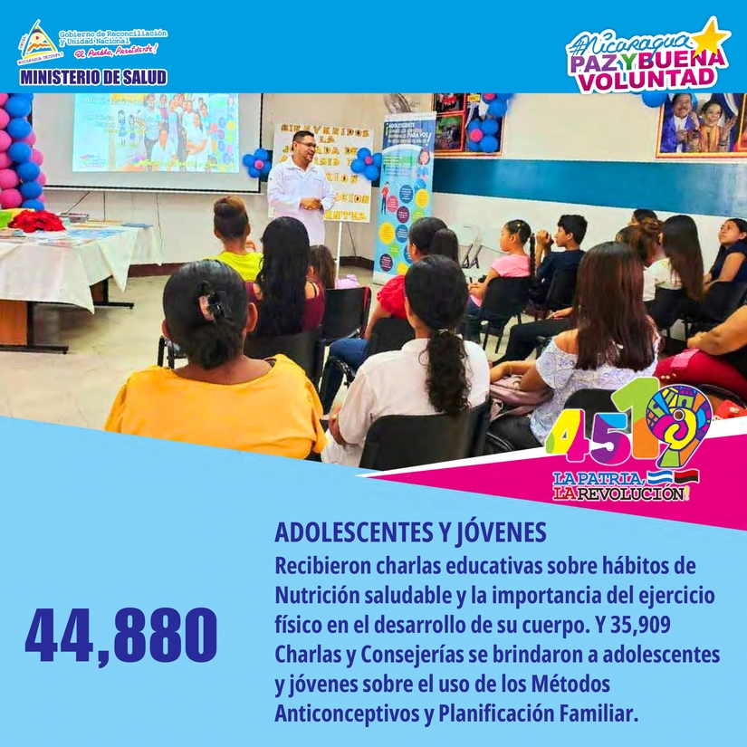 • 44,880 Adolescentes y Jóvenes recibieron Charlas Educativas sobre Hábitos de Nutrición Saludable y la importancia del ejercicio físico en el desarrollo de su cuerpo.