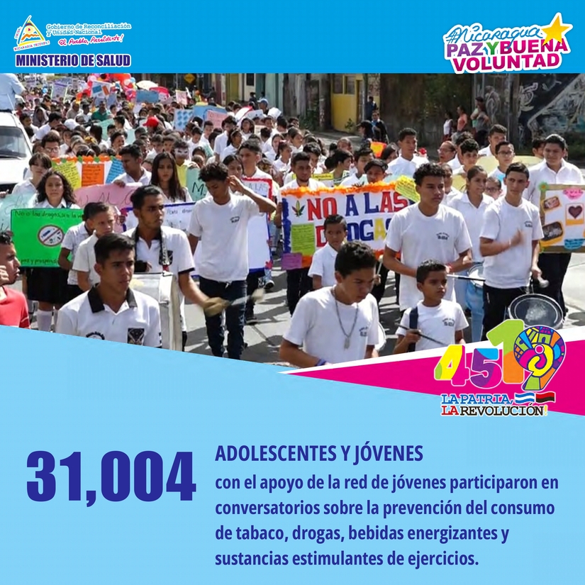 • 31,004 Adolescentes y Jóvenes, con el apoyo de la Red de Jóvenes, participaron en conversatorios sobre la prevención del consumo de tabaco, drogas, bebidas energizantes y sustancias estimulantes de ejercicios.