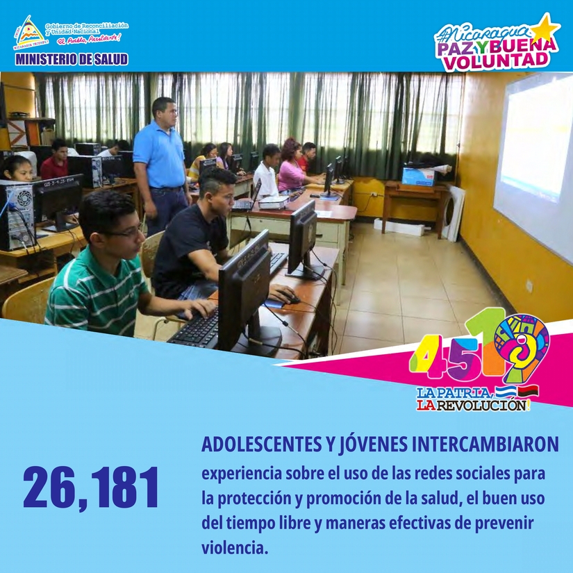 • 26,181 Adolescentes y Jóvenes intercambiaron experiencia sobre el uso de las redes sociales para la protección y promoción de la Salud, el buen uso del tiempo libre y maneras efectivas de prevenir violencia.