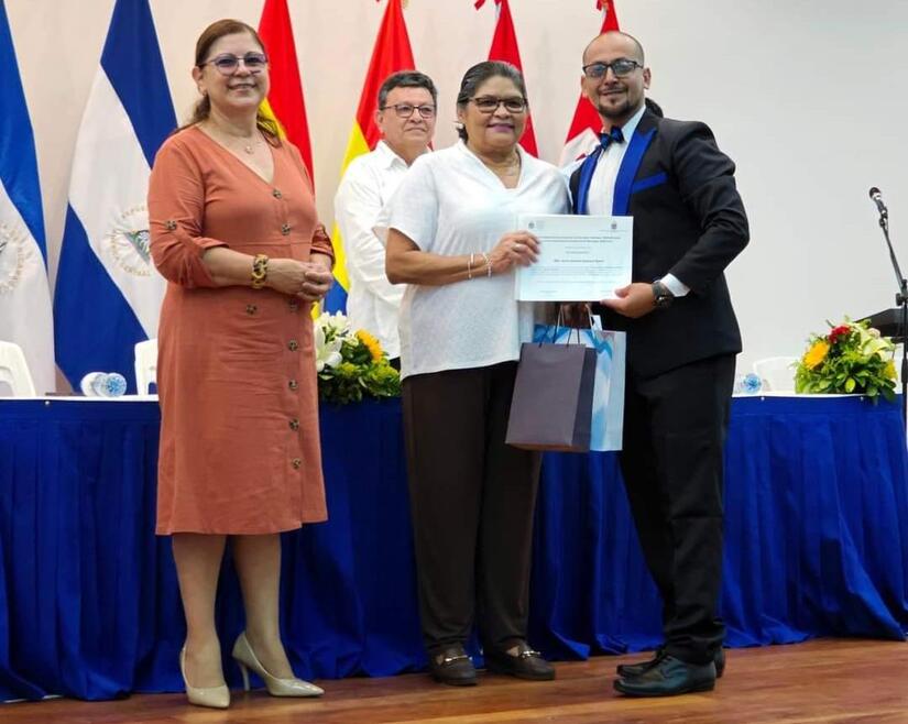 En esta graduación se otorgó reconocimiento y estímulos a las compañeras Ivania del Socorro Martínez Dávila y Ana Fabiana Henríquez Hurtado, y a los compañeros Arllen Javier López Hernández y Oscar Antonio Espinoza Rivera, quienes obtuvieron los mejores promedios en esta edición del Programa.