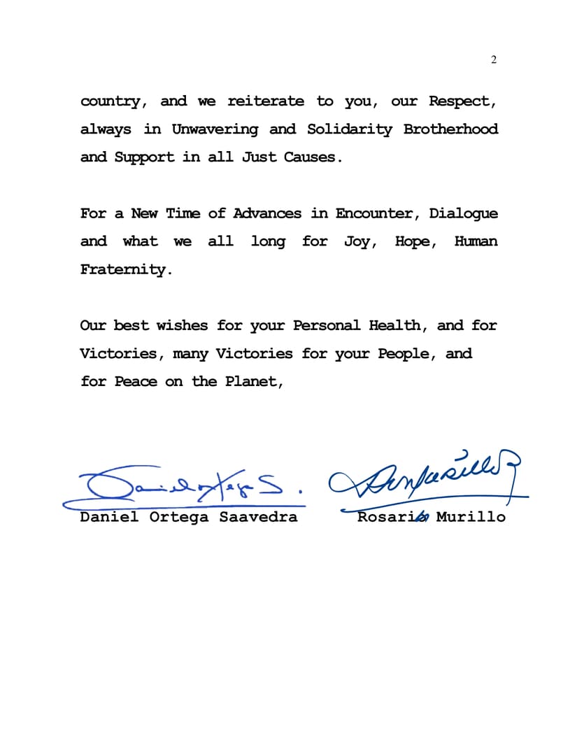 We congratulate the exemplary and calm Elections that have taken place in that enormous friendly country, and we reiterate to you, our Respect, always in Unwavering and Solidarity Brotherhood and Support in all Just Causes.