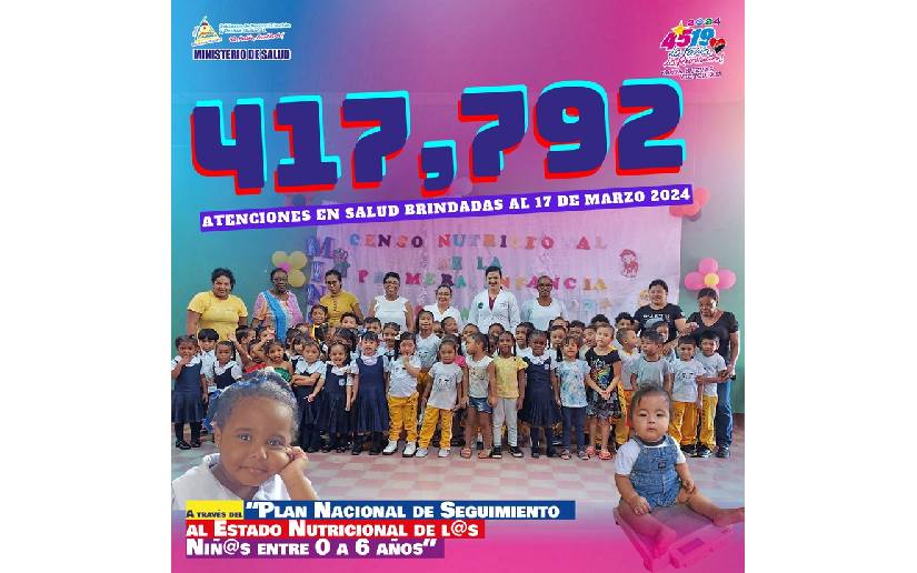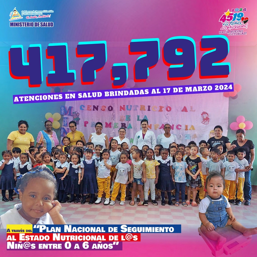 En cumplimiento a las actividades del Plan Nacional de “Seguimiento al Estado Nutricional de l@s Niñ@s entre 0 a 6 años”, al 17 de marzo 2024, hemos brindado 417,792 acciones, detalladas a continuación: