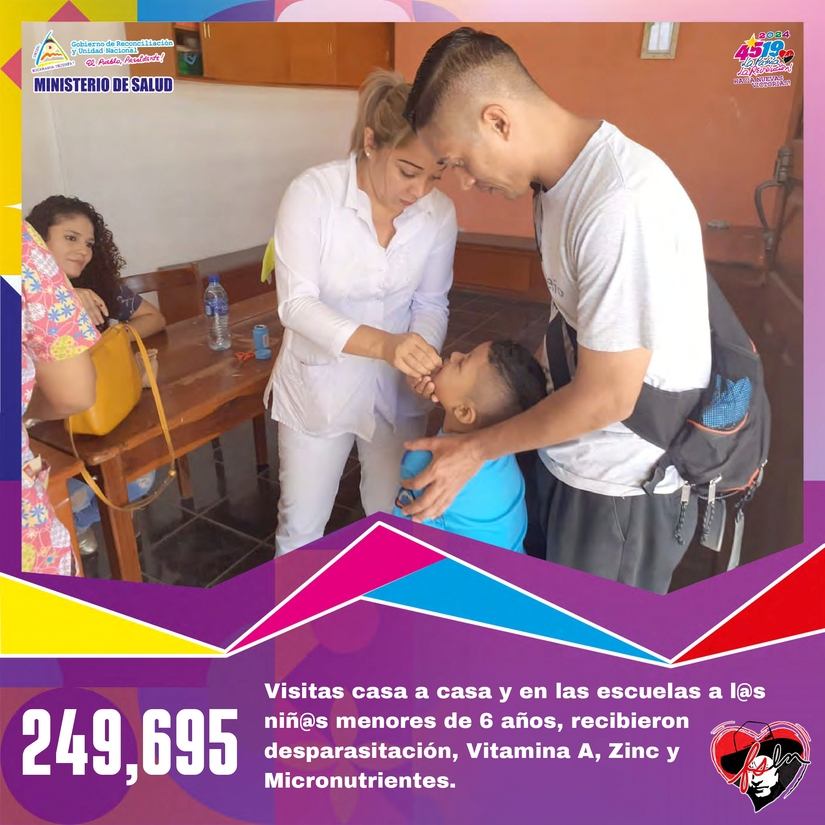• 249,695 visitas casa a casa y en las escuelas a l@s Niñ@s menores de 6 años, recibieron desparasitantes, vitamina A, zinc y micronutrientes.