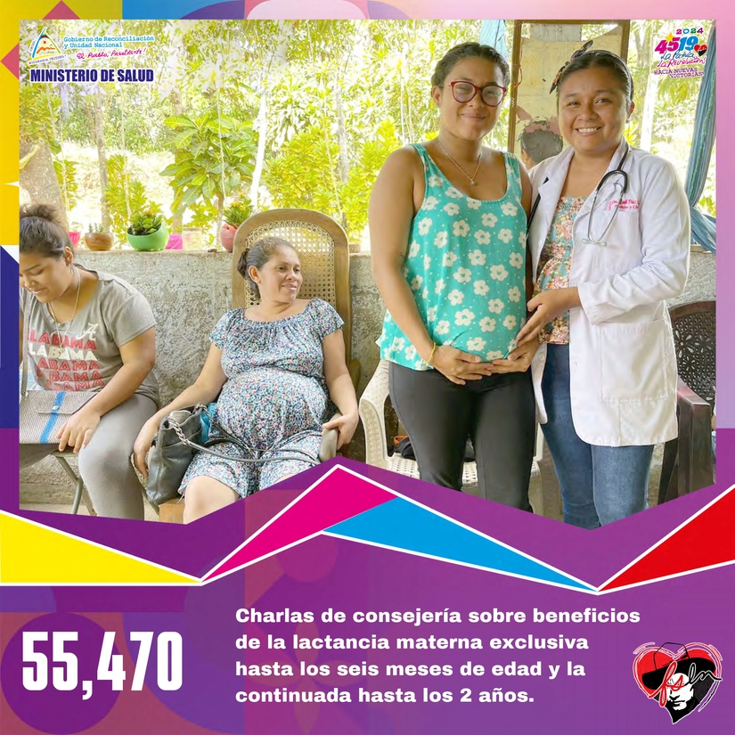 • 55,470 charlas de consejería sobre beneficios de la lactancia materna exclusiva hasta los seis meses de edad y la continuada hasta los 2 años.