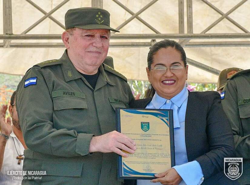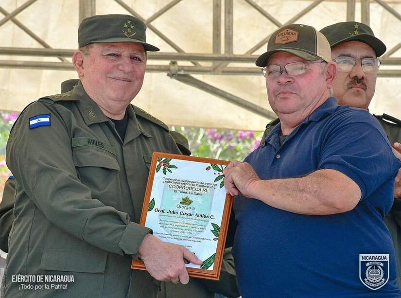 En representación de los cafetaleros del departamento de Matagalpa, la licenciada Gabriela Figueroa Villagra, manifestó: «…no podía haber mejor correspondencia con ustedes hermanos del Ejército de Nicaragua de parte del sector cafetalero, de los pequeños, medianos y grandes productores, cooperados, asociados e independientes que estar aquí hoy reunidos en esta base militar reconociendo, respaldando y ratificando ante el pueblo de Nicaragua y de la comunidad internacional el esfuerzo empeñado con la presencia militar en el campo, contribuyendo de esta manera al desarrollo de la economía y la lucha contra la pobreza, sin la presencia de ustedes no hubiese sido posibles levantar la producción y paz y tranquilidad…el Ejército de Nicaragua es una institución al servicio del pueblo, sabemos que ustedes cumplen una serie de planes en beneficio de todos los nicaragüenses…General Avilés, en nombre de todas las productoras, productores, trabajadores, trabajadoras, comerciantes, transportistas y demás sectores económicos del país, así como del pueblo en general quiero pedirle que nos continúen resguardando en nuestras fincas, carreteras y caminos para gozar permanentemente de la seguridad y tranquilidad que como dignos nicaragüenses nos merecemos…».