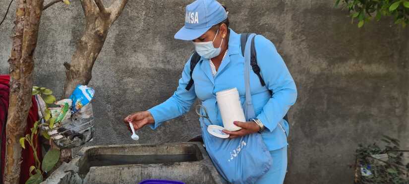 “Estamos visitando 905 viviendas, nosotros con la autorización del morador ingresamos e inspeccionamos los depósitos con agua y luego procedemos a aplicar el abate, con este producto eliminamos las larvas de los mosquitos, además, visitamos los puntos claves como iglesias, parques, escuelas para que todo el sector esté libre de mosquitos”, refirió Denis Maldonado, Programa de Transmisión Vectorial, Minsa.