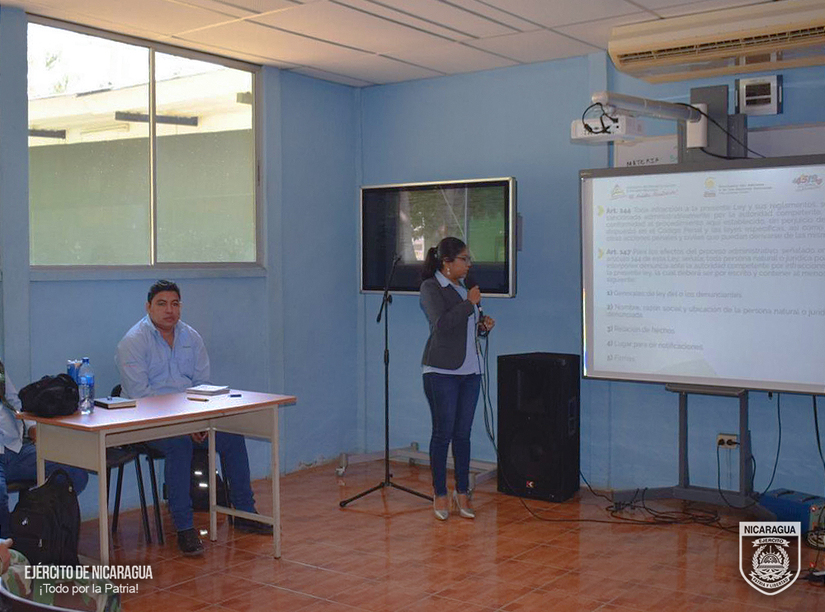 La inspectora ambiental del MARENA, ingeniera Mayda Jessenia Ponce Matey, expresó: «…estamos aquí con el objetivo de capacitar a los compañeros del Ejército en diferentes temas, tenemos lo que es legislación ambiental, biodiversidad, áreas protegidas, cambio climático y establecimiento de vivero, esto viene a ser un reforzamiento, porque nosotros como Ministerio del Ambiente y los Recursos Naturales somos el ente regulador…el Ejército nos apoya mucho para resguardar el patrimonio natural, la biodiversidad, la fauna, la flora en todo el territorio nacional…».