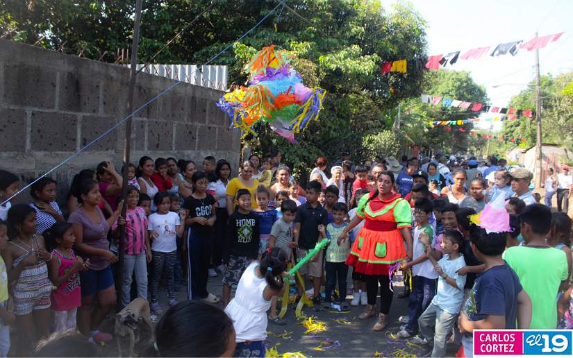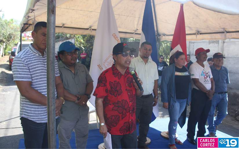 “Estamos en el llamado callejón de Los Loáisiga en este distrito cinco, entregando a los pobladores 7 calles nuevas que orientó el Gobierno del Comandante Daniel y la Compañera Rosario para beneficio de los pobladores”, dijo Armas.